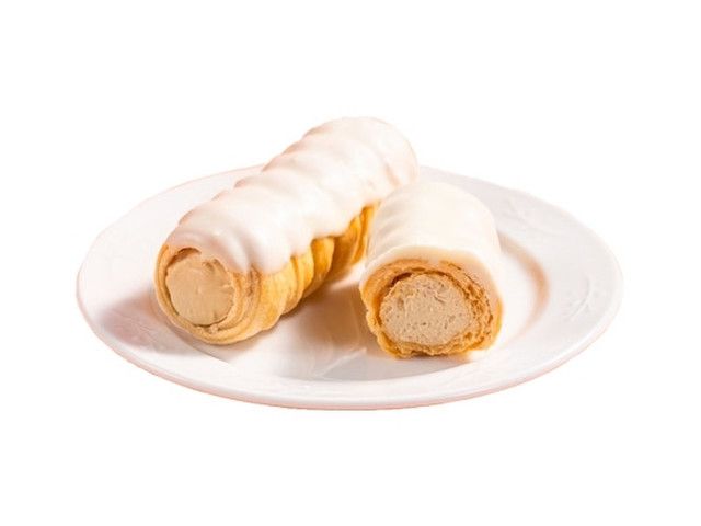専用生地を使用したコルネに塩キャラメルクリームをIN。ホワイトチョコレートでコーティングして仕上げました。塩味が甘さを引き立てます。 ※本商品は1本ずつの販売です。