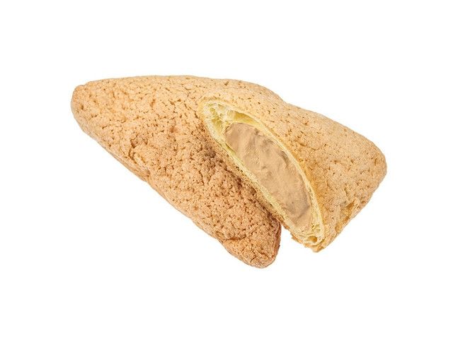 生クリームを加えたしっとりもちもちとした白生フランスパンに、焦がしキャラメルクリームと焦がしキャラメルホイップをサンドしました。 ※北海道地区は仕様が異なります。
