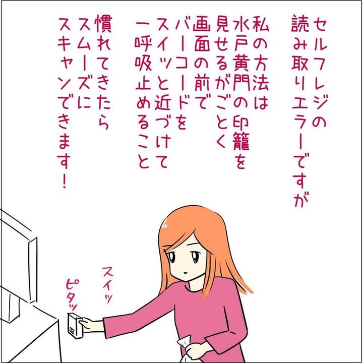 レジ担当者のある女性は、お客からのお褒めの言葉は全部自分のことだと思って受け取っているのだとか。また別のある女性は、セルフレジを使う時、水戸黄門が印籠を見せるようなポーズで一呼吸止めるとスムーズにスキャンできると語っていました。