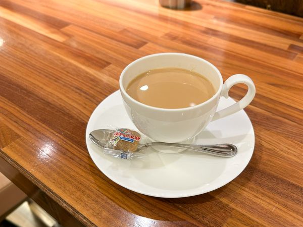 店員さんの作業が終わり、作っていたものを私の席に持ってきてくれました。やっぱり私が注文したミルクティーだったんだ! 角砂糖を入れて飲みました。ほろ苦く、濃厚なミルクの味で、上品な甘みです。