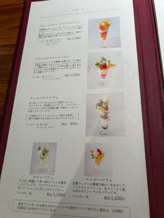 メニューを見ると、美味しそうなパフェがたくさん載っています。