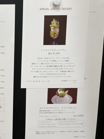 月替わりでプチパフェとセットドリンクを楽しめるのですが、私が来た月のパフェは「ぶどうのプチパフェ」でした。月ごとに変わるプチパフェは毎月何のフルーツなのか楽しみです。