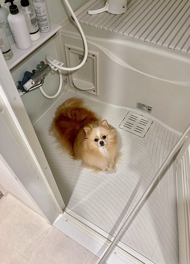 忙しくて愛犬をかまってあげられなかったら・・。、お風呂場で拗ねているポメラニアンに「無言の抵抗」「拗ねてたのが、かわすぎます」
