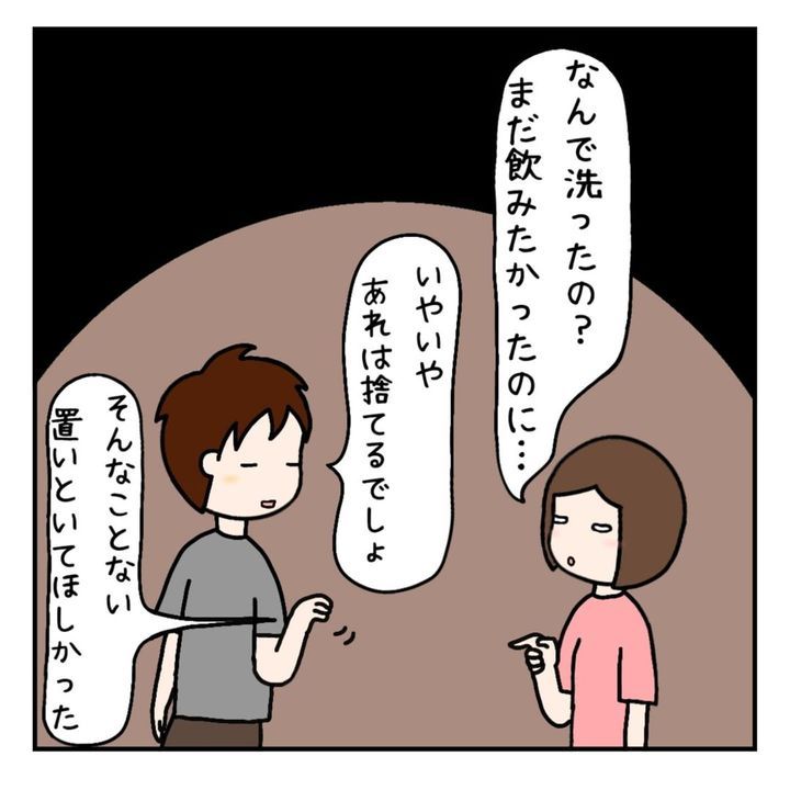 飲み物は食べ物よりも気軽に処分されがちですが、まだ飲めるものを捨てるのは確かにもったいないかも?夫さん、飲みかけのドリンクは、どうかそのままにしておいてあげてください…!