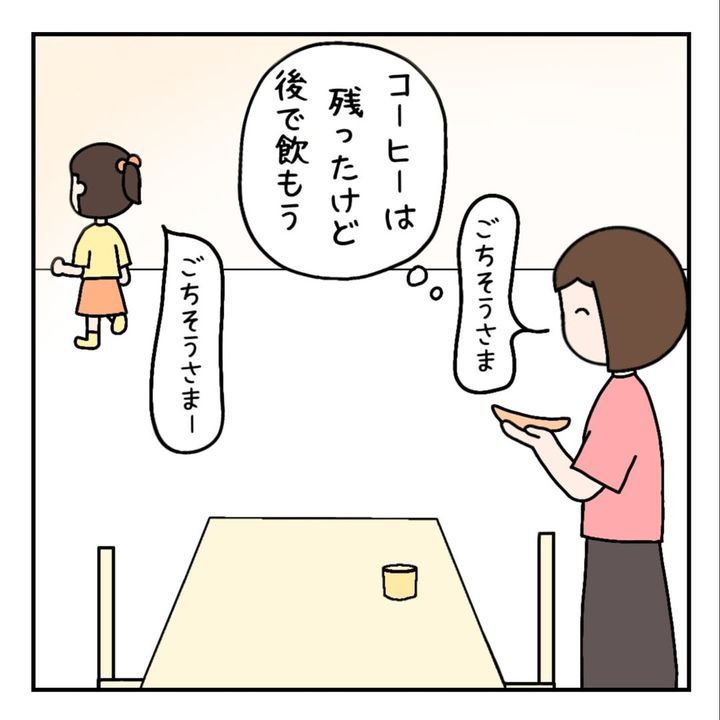 飲み残したドリンクを、しばらくしてから飲むことがあるため、片付けずにそのまま置いておくkomorebi kirariさん。その日も、コーヒーを後で飲もうとしたのですが、夫さんが片付けてしまったのだとか。再びコーヒーを淹れることを面倒に感じるkomorebi kirariさん。しかし、夫さんにも娘のゆなちゃんにも「捨てるでしょ」と言われ、納得がいかないのでした…。