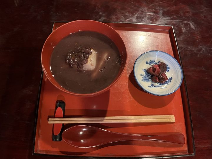 早い時間にランチを済ませての訪問でしたので、甘いものを頂きたいと思い、おしるこをお願いしました。