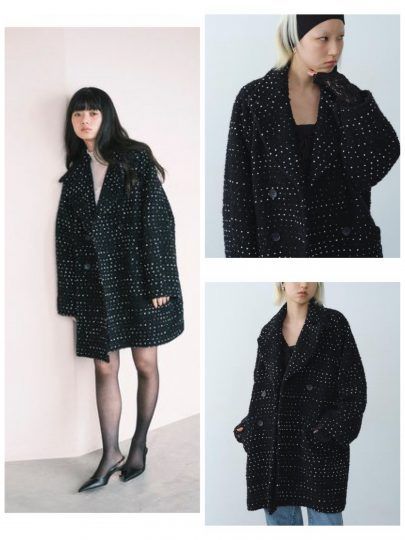 上品な雰囲気が漂うツイード仕立てオーバーサイズコートも。丸みを帯びた袖が柔らかい印象を演出します。カジュアルにもエレガントにも対応する点もポイント。