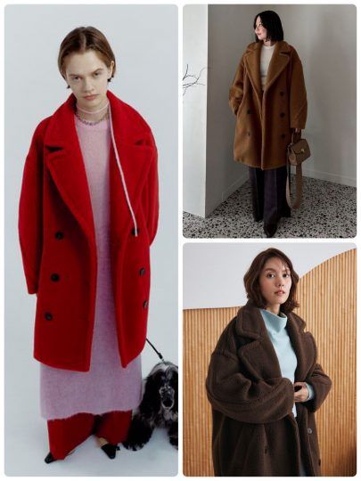 今年も人気続行中のテディコート。キュートとモード、どちらの表情も楽しめるうえ、フランス発の上質なエコファー素材を用いて着心地の良さも追求しています。