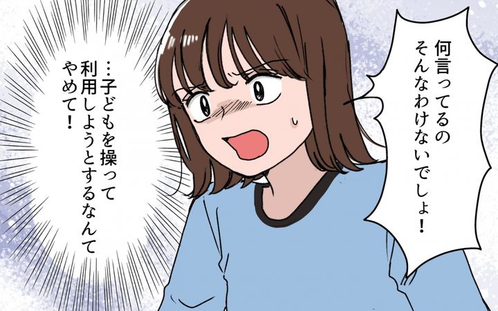 そんな子どもたちに向かって、夫はいつものように私を悪者にしたでたらめを言い始めました。私が子どもたちを置いて出て行くと…。龍馬は子どもたちに擦り寄り、「ママって本当に…いじわるだよな〜」と悲しそうな顔で囁きました。彼は、私が悪い母親であり、子どもたちを捨てようとしているかのように印象操作しようとしたのです。