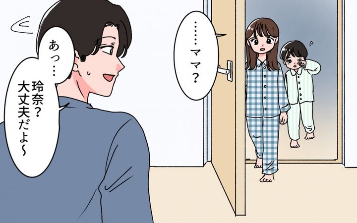 夫が「離婚したいなら子どもを置いてひとりで出て行け」と怒鳴り声をあげたところで、子どもたちが部屋に入ってきてしまいました。