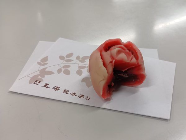 「薔薇の練り切り」は、白あんとこしあんが口の中で相まって、ほっこりあと引く美味しさ♪ お抹茶とともにゆっくりと味わいたくなります。