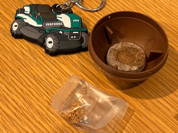 同席していた方は、なんと非売品の「ラビットモアー」キーホルダーをゲット。オーレックの草刈機をモチーフにしたキーホルダーで、正直うらやましかったです。