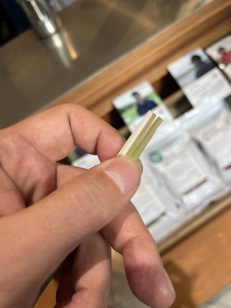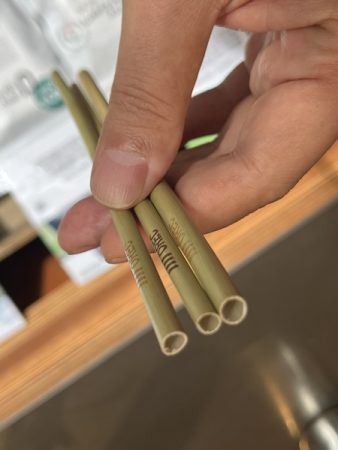 ドリンクには「草ストロー」が使われていました。 天然素材で作られており、未使用のときは乾燥していて指で軽く押すとパキッと割れてしまうほど。