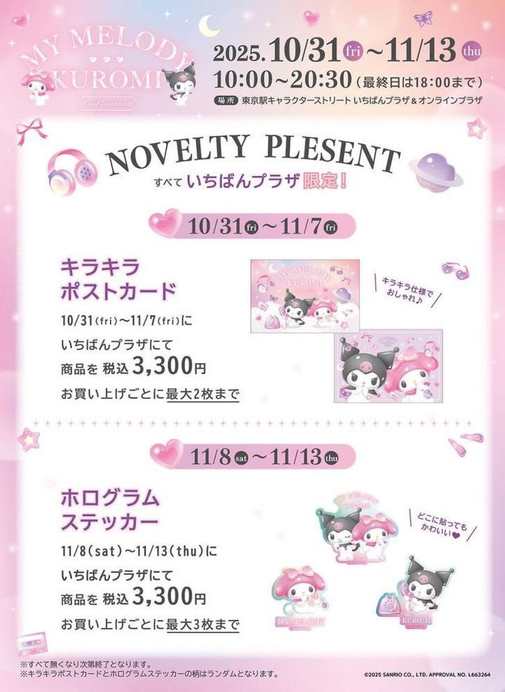 東京駅にマイメロディ&クロミの限定グッズが大集結!3300円以上の購入でポストカードかステッカーもらえるよ♡《31日スタート》