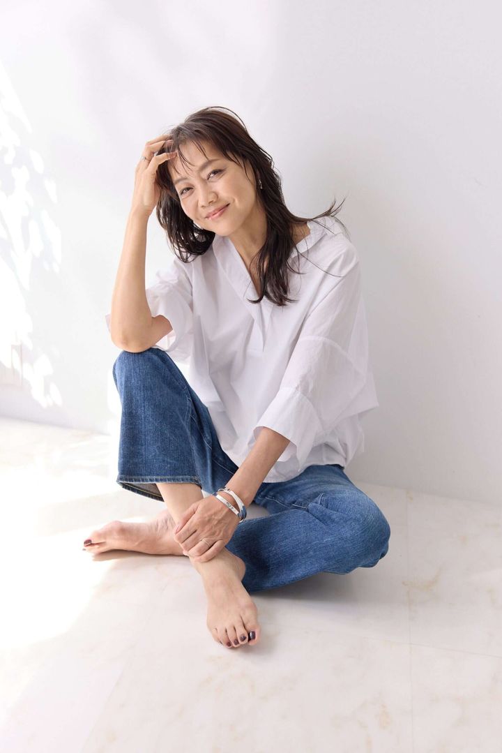 「年齢を重ねるとともに現れるシワやシミ、たるみなどは、その人の生きてきた証ですので、不自然に無くそうとは思いません。かといって何もしないで野放しするのではなく、ある程度のお手入れ、たるみケアや肌のコンディションを整えておくのは大切。ゴルフやアウトドアが好きですが、もちろん紫外線対策も忘れずに。モデル仲間やヘアメイクさんから美容情報を入手して、使うアイテムや美容法はアップデートしています。」