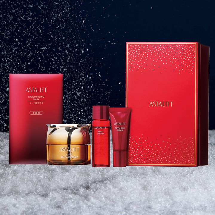 富士フイルム独自のサイエンスから誕生したエイジングケアブランド「アスタリフト」。スターアイテムの「ジェリー アクアリスタ」の誕生15周年を記念し「美の輝き」をテーマにしたゴールドの限定パッケージが登場。化粧水、クリームのミニサイズ、シートマスクをセットにしたプレミアムなコフレは早い者勝ち。アスタリフト ホワイト ジェリー 15th プレミアムコフレ ¥14,300(富士フイルム)