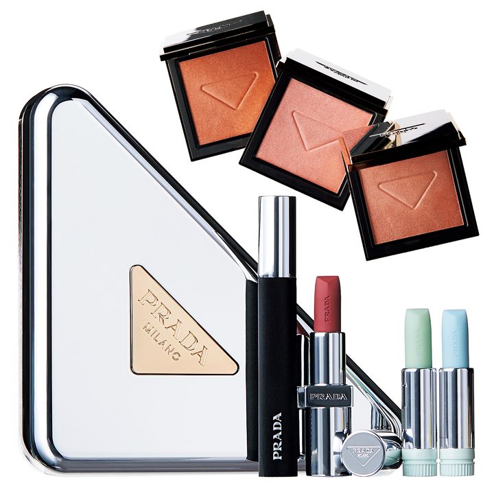 上段左から:プラダ ライト グローイング パウダー03 02 01 各¥11,550、プラダ ビューティ クラッチ セット ¥25,300(プラダ ビューティ)