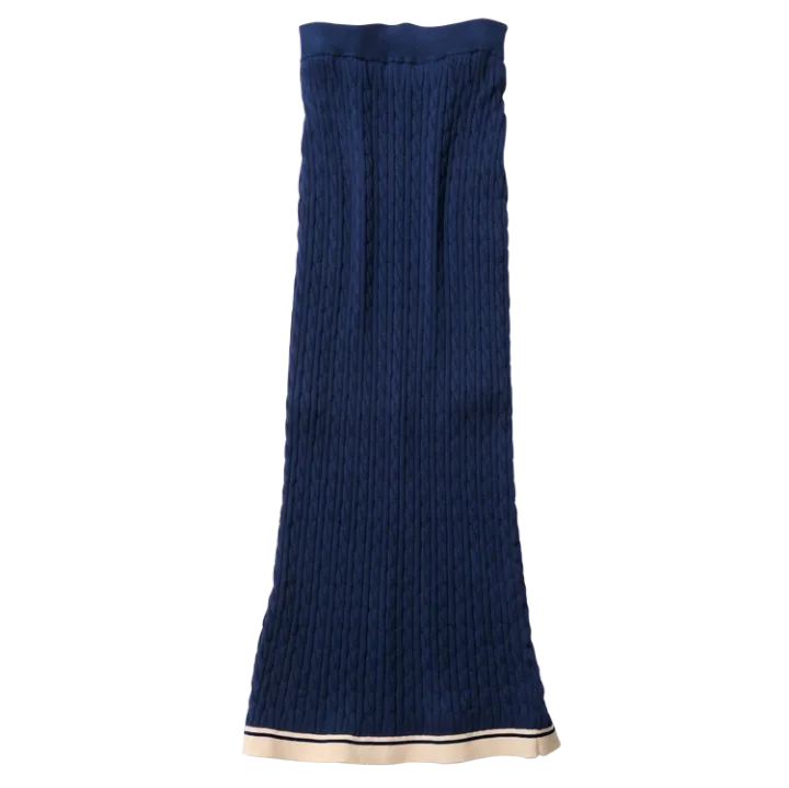 体にフィットする素材で女みたっぷりなニットスカート。ストンと落ちるIラインシルエットで縦のラインが強調されるから、細見え効果も◎。