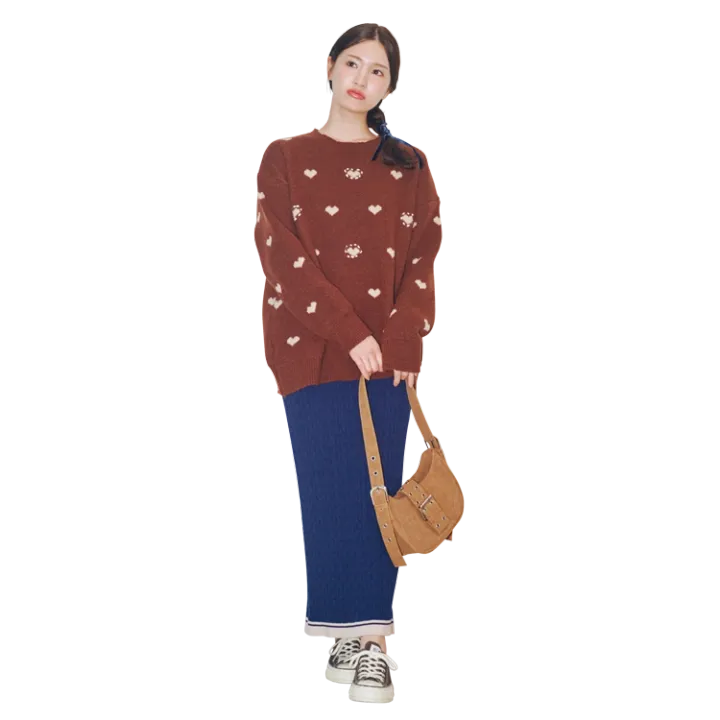 ほっこり落ち着いた色あいのニットにタイトなスカートをあわせるとスタイルアップ◎。日常で着るカジュアルコーデにはスニーカーがいちばん!