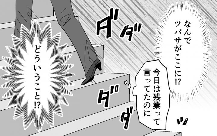 ドアの鍵は開いており、玄関には夫の靴が。胸の鼓動を抑えきれないまま、ドアを勢いよく開け放つとー…そこには驚くふたりがいました。
