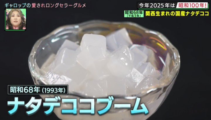 続いては、昭和68年にあたる1993年、平成5年にスポットを当てる。この年、空前のブームとなったのが“ナタデココ”。フィリピンの伝統食だったナタデココの製造に日本で唯一成功し、今も作り続けているのが神戸市に本社のある企業「フジッコ」だ。昆布の佃煮や煮豆などで有名な「フジッコ」がなぜナタデココを手がけることになったのか? なんと「フジッコ」の福井正一社長が自ら登場し、国内産ナタデココの汗と涙の誕生秘話を明かす!