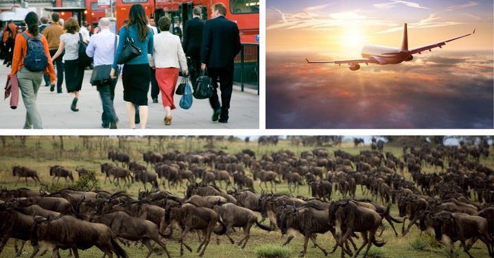 サバンナを横断する100万頭規模のヌーやシマウマの大移動は自然ドキュメンタリーを象徴する光景ですが、移動量としてはサッカーワールドカップやイスラム教の大巡礼のような人間の巨大イベントと同程度のようです。