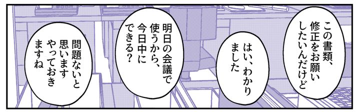 ユリコさんに書類の修正を頼んだところ、そのわずか1時間後にその仕事を放棄して帰ろうとしたのです。本当にやる気があるのでしょうか……? 旦那さんと協力して共働きしていると言っていたし、いろいろ方法はあるはず。引き受けた仕事を簡単に投げ出すなんて、本当に信じられません。