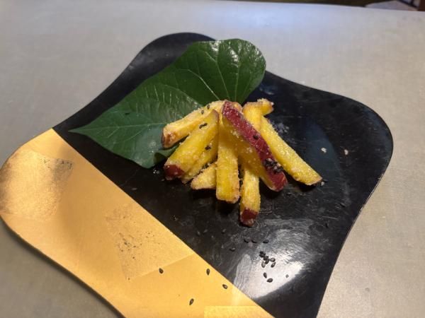 <材料> さつまいも:中1本(200~250g) 揚げ油:適量 砂糖:50g 水:大さじ1 黒ごま:適量(お好みで)