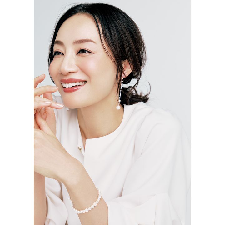 ブラウス¥19,800(カデュネ)ピアス¥69,300(シルバーコレクション/ウノアエレシルバーコレクション)パールブレスレット¥5,940(アプロ/ロードス)