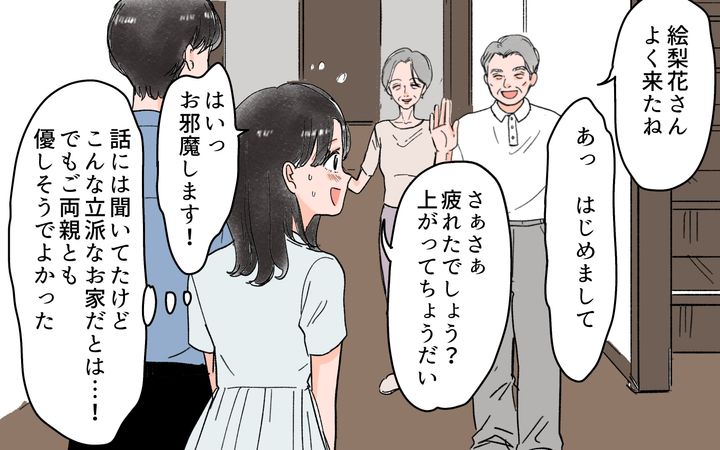 田舎の名家の跡取り息子と結婚することになった絵梨花。結婚するまではわからなかったが、夫は常に義両親のご機嫌を伺い、義両親の言いなりにしか行動できない人だった。妻や子どもよりも優先するのは義両親の意見。さらに夫は義両親に対しストレスを溜めているからか、妻や子どもに八つ当たりしたり大声で怒鳴ることが増えるのだった。
