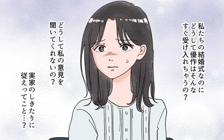 さらにはお義母さんの「結婚式は全部まかせて」という声も、彼は受け入れてしまいました。私は初めて会った義両親の前で反論できるはずもなく…。