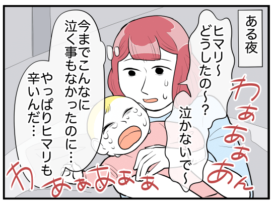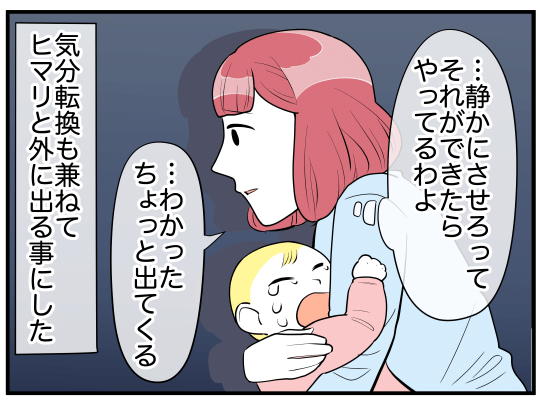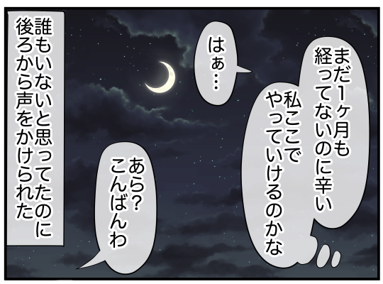 夫に夜泣きがうるさいと怒鳴られ、娘の寝かしつけのために出かけた夜の散歩道。誰も味方はいないのか…と悩むライコミに声をかけたのは、同じく赤ちゃんを抱く女性でした。