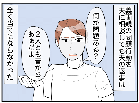 転勤してから忙しい毎日を送る夫を気遣い、義父母との問題は自分で解決しようと努めてきたライコミ。しかしもうどうにもできない状況であるため、意を決して夫に相談したのです。