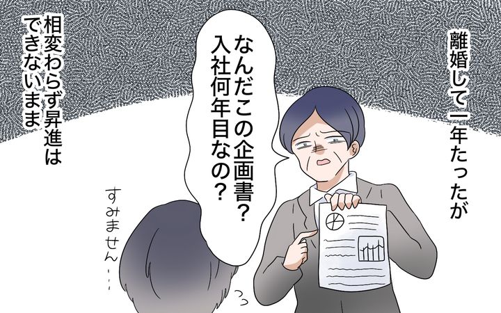 美琴の夫・翔は妻の昇進が許せず、嫉妬しモラ夫になってしまう。自分の仕事がうまくいかないのを美琴のサポートがたりないせいにし、仕事をやめるよう要求する。さらに要求が通らないと3ヶ月間無視を続けたのだった。美琴が離婚を切り出すと彼は全部美琴のせいだと逆ギレ。翔は「本当に出ていくのか」と引き留めたが、美琴は慰謝料も請求せず離婚の手続きを進めた。美琴はそれから1年は仕事三昧で忙しく過ごしていたが、部下の1人と急接近。幸せになれそうな予感がするのだった。