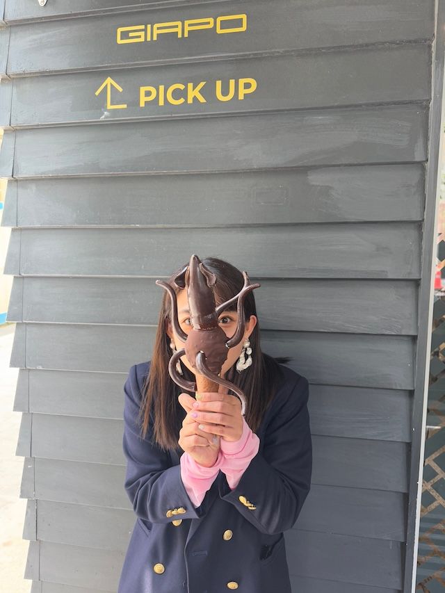 顔ほどのサイズがあるイカのコーン!遊んでいるとすぐに溶けます