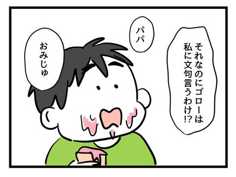だいたい、「ムサシが寝た後」遊びに行けてたのも、家でミサキが寝付かせて見張ってくれてたからなのに。怒らず冷静に言い返せるミサキは立派だと思ってしまいます。そんなミサキの言葉にろくに耳も傾けず、ゴローはアイスだらけになったムサシにかかりきりに。
