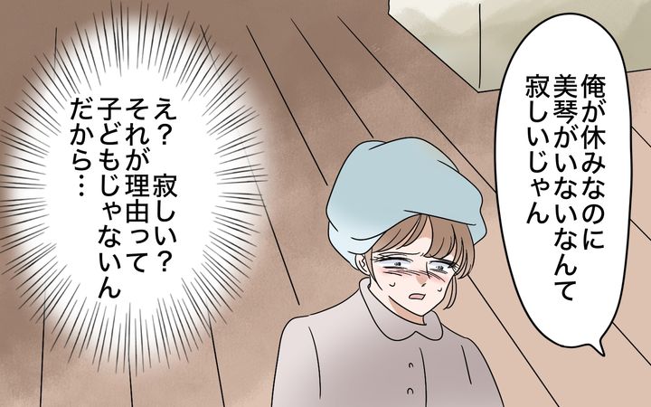 美琴の夫・翔は自他ともに認める理想の旦那でしたが、美琴が昇進し年収が翔を上回ると、嫉妬心を露わにし嫌味を言うようになってしまう。実は翔は自分を頼ってくれる美琴が好きだったのだ。美琴は彼の態度の変化に困惑し、これまでの苦労を翔に伝え感謝を示そうとするも、翔はそれを自慢と捉え、さらに嫌味を返す。険悪な関係が続く中、美琴は出張に行くことに。翔は「行くつもり?」と否定的な反応をした。