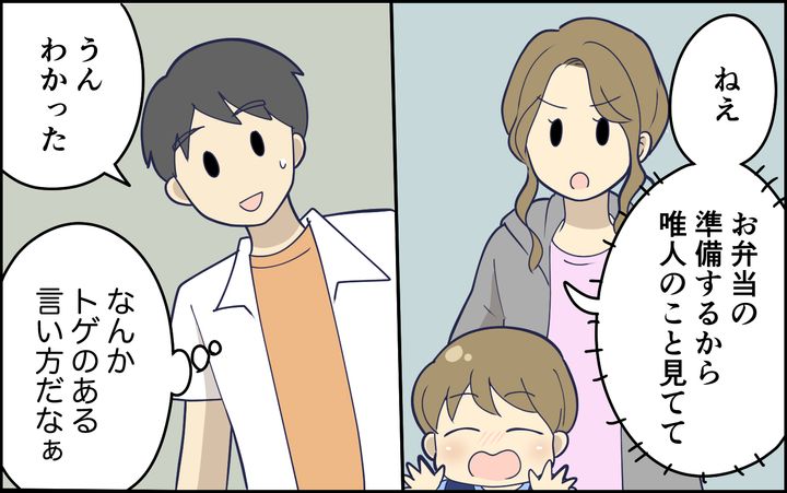 妻が怖い…。「なんで黙って見てるの?」って言うけど、僕なりに息子のことを見てたつもりだし、僕が勝手に転んだ息子のお世話をしたら、菜緒ちゃんは「そうじゃない! こうして!」って不機嫌になるでしょう?