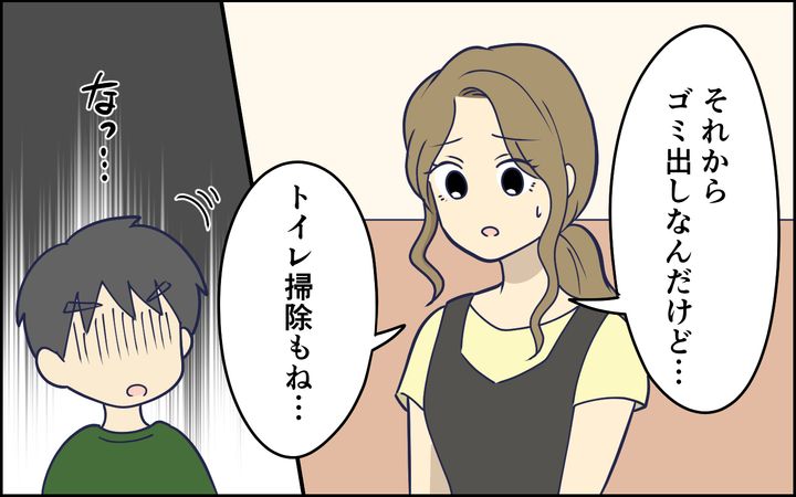 ある日、熱を出してしまった妻・菜緒はご飯が作れず、夫の雅也に買い物を頼んだ。しかし夫が買ってきたのはカップ麺やおつまみなどばかり。「え…せめて子どものご飯くらい買ってきてよ」と思ったが、夫は「指示してくれないからわからない」の一点張り。そんな夫の姿に、妻はどんどん不満を溜め込んでいく。そして…。