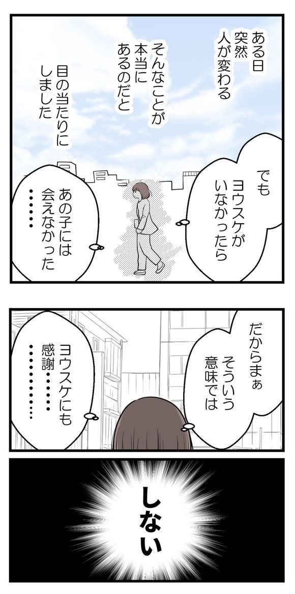 ある日突然、自分の愛した人が変わる姿を見て、そういうことが本当にあるんだと目の当たりしたユウ。赤ちゃんを迎えるという最高なはずの時間に、しなくていい苦労をたくさん経験してしまいました。