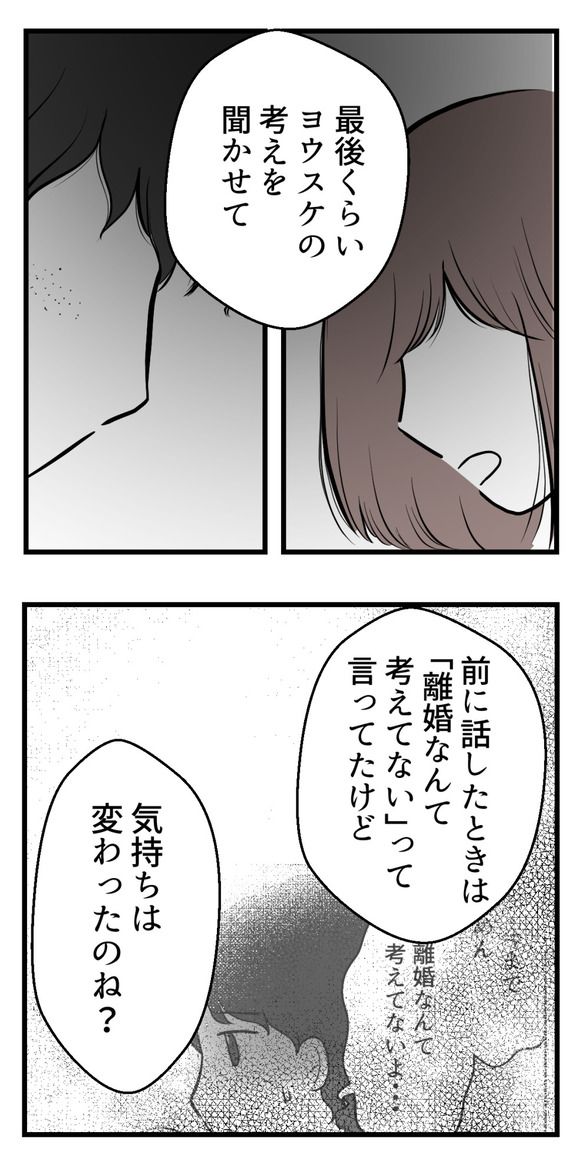 最後くらい、義母からではなく、「ヨウスケの口から聞きたい」と投げかけるのでした…。