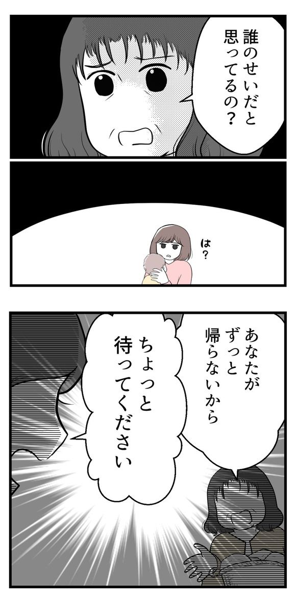 「誰のせいだと思ってるの? あなたが帰らないから…」