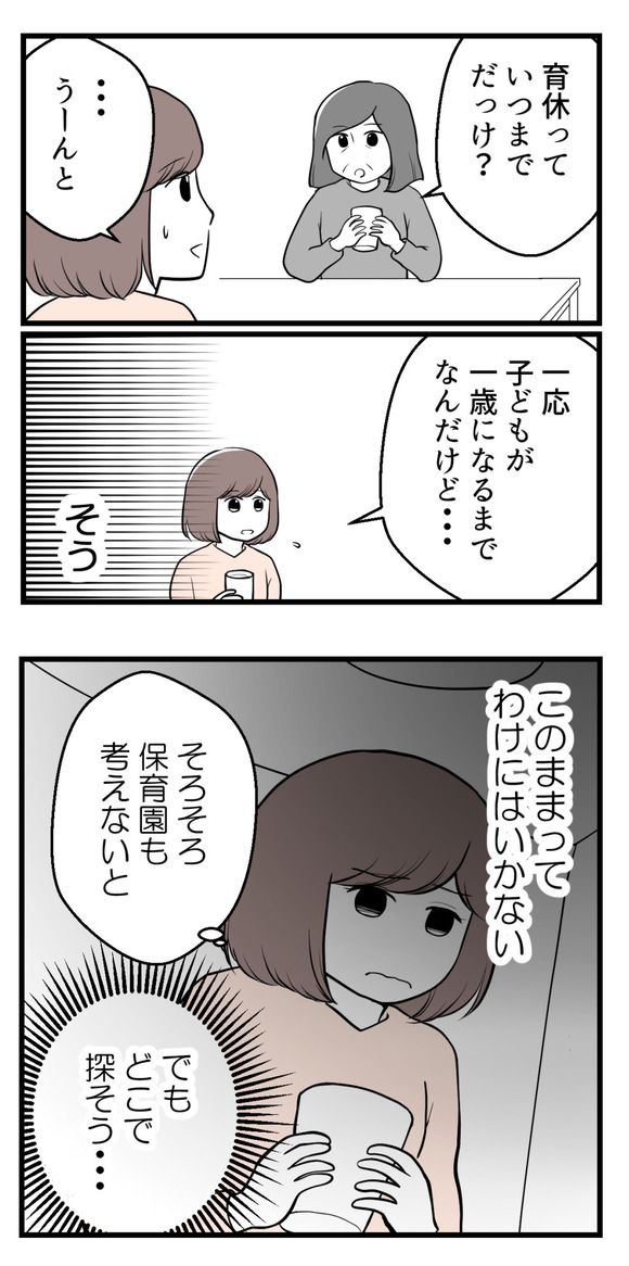 そんな中、実母から「育休っていつまでだっけ?」と聞かれたユウは、改めて考え始めます。