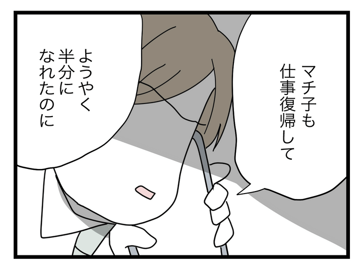 主人公・マチ子は同棲中に妊娠し結婚。夫・ブン太は生活費も家事もきっちり半分ずつにしたい「半分夫」で、マチ子がつわりに悩んでいても退職に追い込まれても半分を強要。子どもが生まれると育児に積極的になるブン太でしたが、その頃からマチ子の元同僚・ミナミと裏切りの関係を持っていました。離婚を決意したマチ子はミナミを問い詰め、家庭を壊さない代わりに慰謝料の支払いを要求します。ミナミのスマホに残っていたブン太とのやりとりの内容を証拠として残し、ついにブン太の制裁へ。ブン太の誕生日、妻子から祝ってもらって「今が一番幸せだ!」と歓喜するブン太でしたが、翌日帰宅すると家は真っ暗。マチ子からのプレゼントが離婚届だと知り、マチ子の荷物が全てなくなっていることに気付きます。半分にできない子どもを連れだしたことに納得のいかないブン太はすぐマチ子に電話をかけ、「離婚しないから!」と怒り叫ぶのでした。