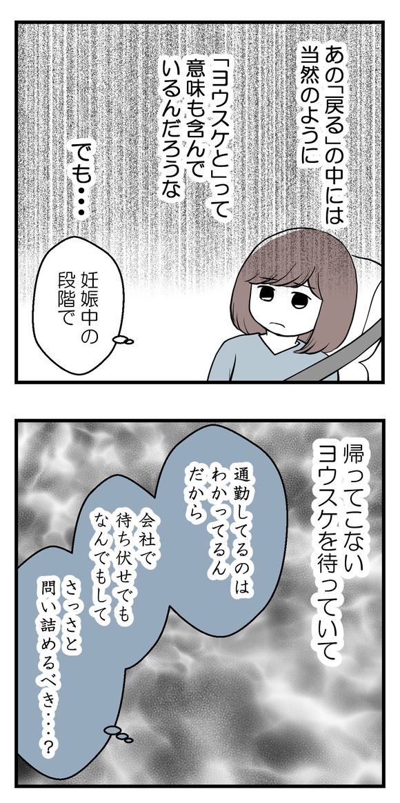 妊娠中、帰って来ないヨウスケを待ち伏せでもなんでもして問い詰めるべきだったのかな…と思います。しかし、ユウにそれはできませんでした。