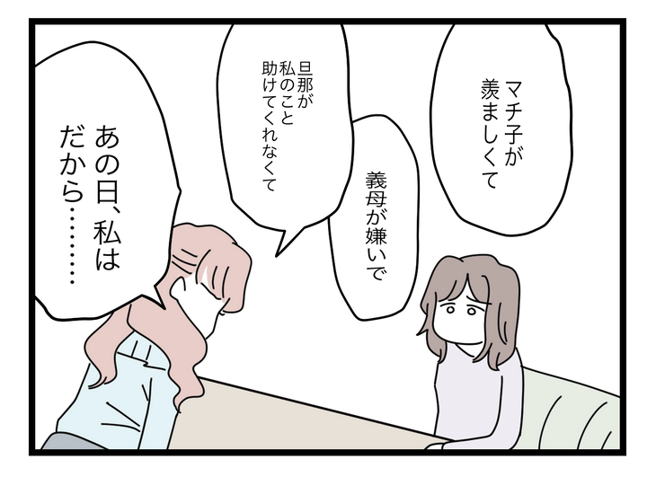 「子どものことを思ったら踏み止まれなかったのか?」マチ子が尋ねると、ミナミは「まだ小さいから大丈夫だと思った」と答えました。