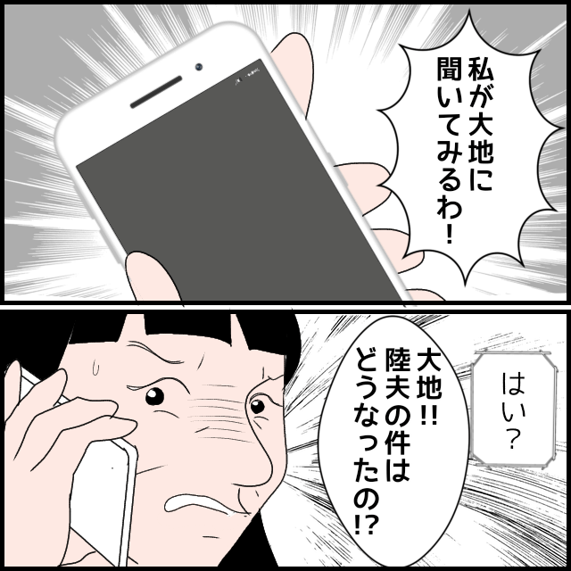 窮地に追い込まれ、次男・大地に電話をかける義母。陸夫にはまだ会えていないという大地ですが、どこまで情報を知っているのでしょうか…。