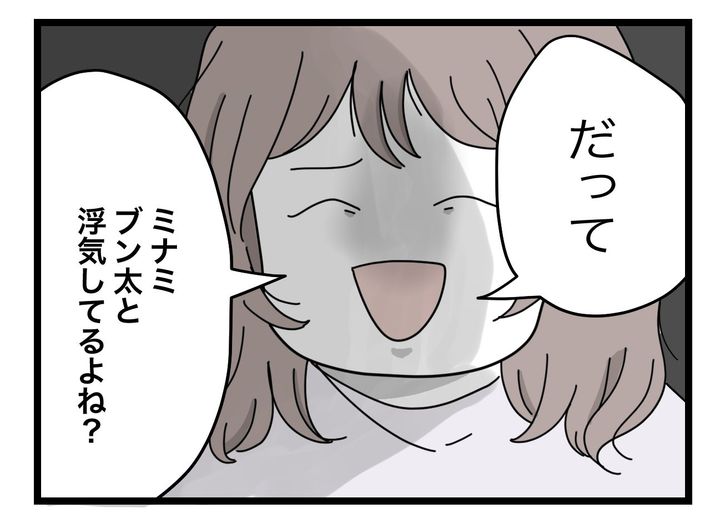 同棲中に妊娠した主人公・マチ子は、夫・ブン太と入籍しましたが、ブン太は生活に関わるすべてを半分にしたい「半分夫」でした。つわりで家事も仕事もままならないマチ子は、ブン太にどんどん追い詰められていきます。娘が産まれると、ブン太は育児だけは半分にこだわらなくなり、離婚を考えていたマチ子も思いとどまります。しかしその矢先、マチ子は元同僚のミナミのSNSにブン太の痕跡を見つけます。夫の裏切りを確信し、離婚を決意したマチ子は、半分ルールを逆手に取り、娘からブン太を離します。「半分じゃなくない?」と囁くと、あっさりと娘の育児から手を引くブン太。その様子を見て迷いがなくなったマチ子は、離婚に向け着々と準備を進めます。そして、電話でミナミを呼び出したのでした。
