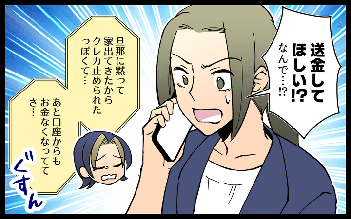 でも、旦那さんにクレジットカードを止められている、口座のお金もなくなっていると言われれば、貸さないわけにはいかず…。