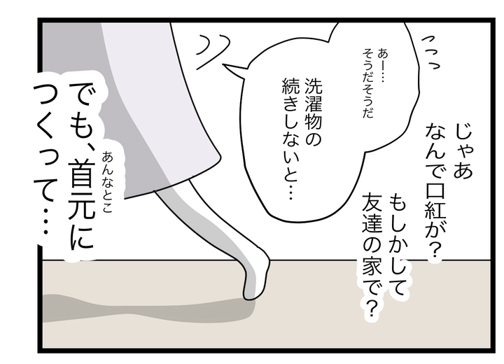 2. 夫のシャツに口紅の跡…友だちの家に行ったはずなのに【半分夫 Vol.69】